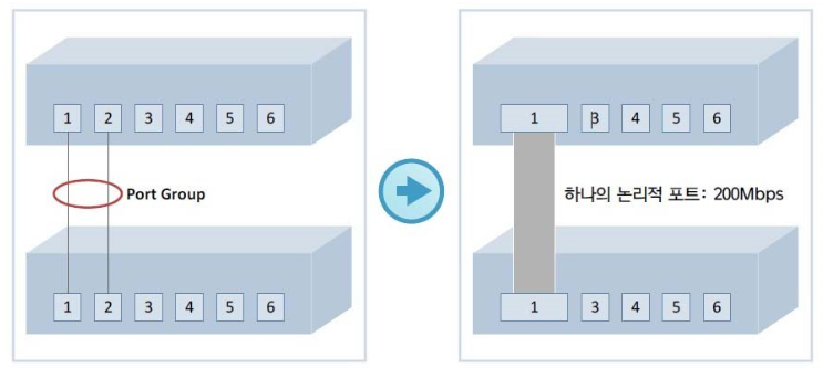 - 여러 개의 물리적인 포트를 묶어서 하나의 논리적인 포트로 동작하게 만드는 기술