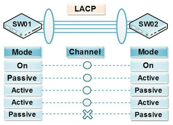 - Passive Mode (수동 모드) : 소스 인터페이스가 먼저 LACPDU를 보내진 않고, 타겟 인터페이스에서 송신한 LACPDU를 수신하고 응답을 보내서ㅇ LACP를 구성한다
