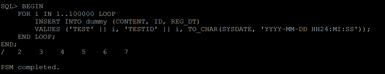 INSERT INTO dummy (CONTENT, ID, REG_DT)