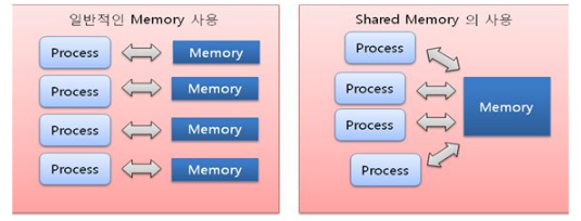- OS가 각 프로세스의 각각의 Memory 영역에 RAM의 Shared Memory를 매핑해주어서 사용