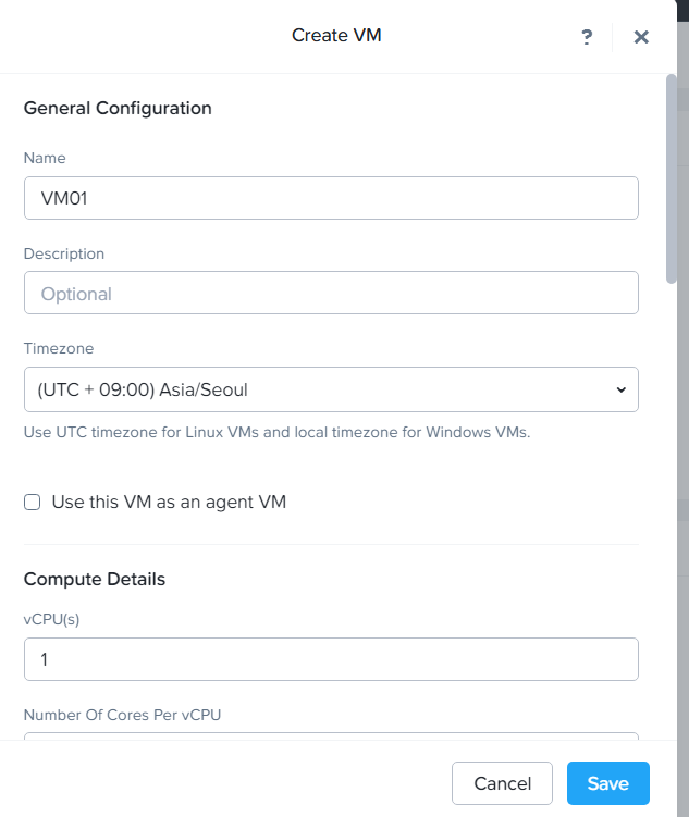 VM 이름, 타임존 설정
