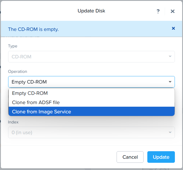 Operation > Clone from Image Service 선택