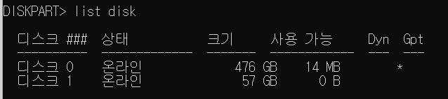 (디스크 0은 disk 0이고 디스크 1은 disk 1이다)