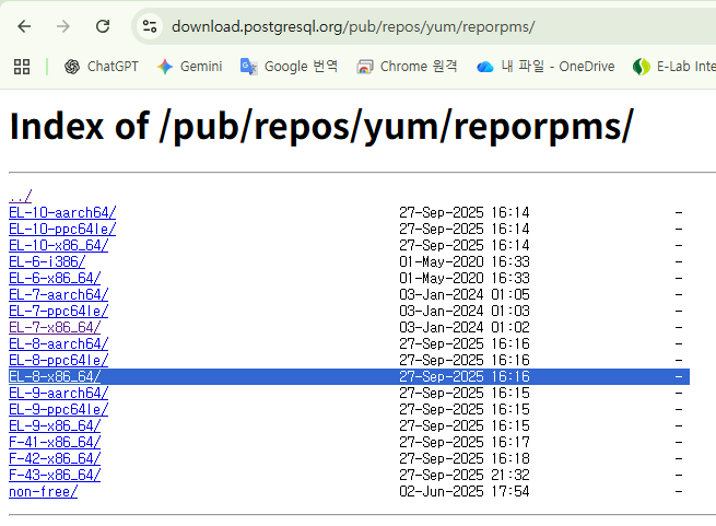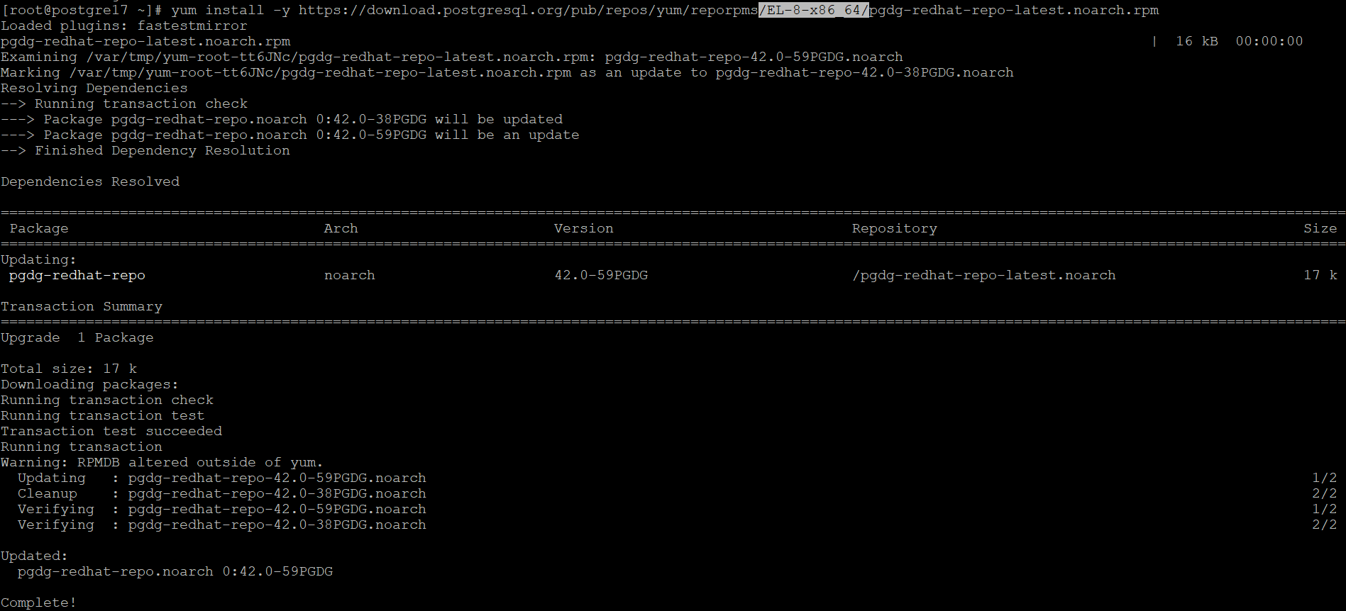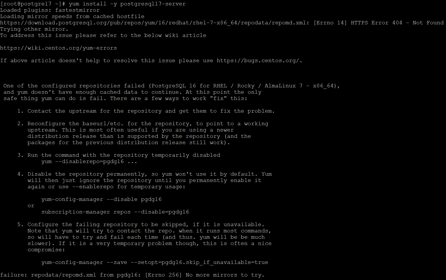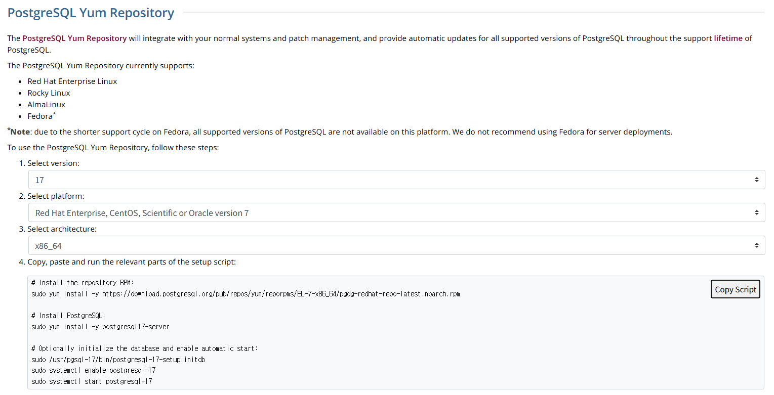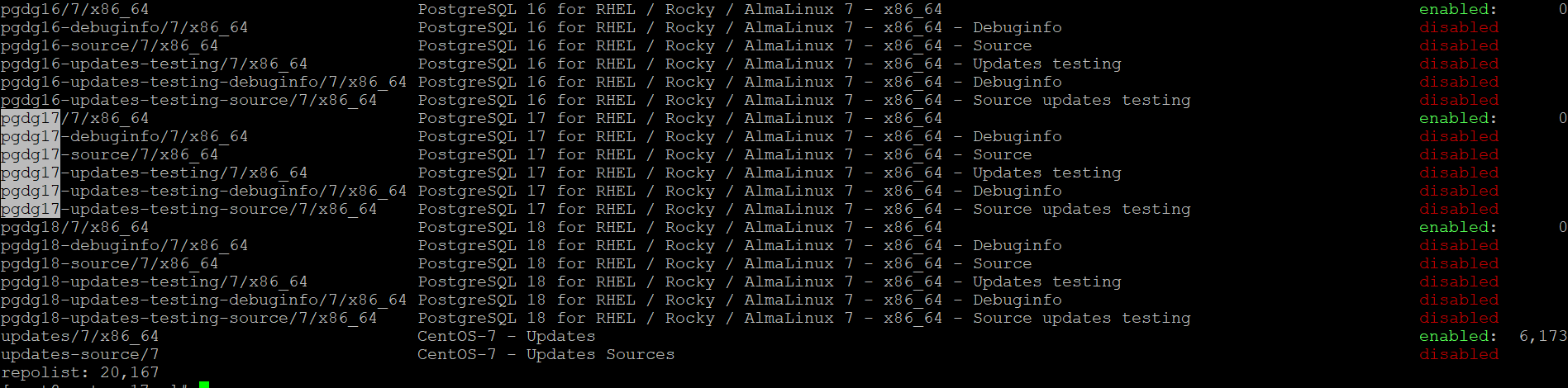 rhel 7버전의 repo에는 postgre 17이 없다