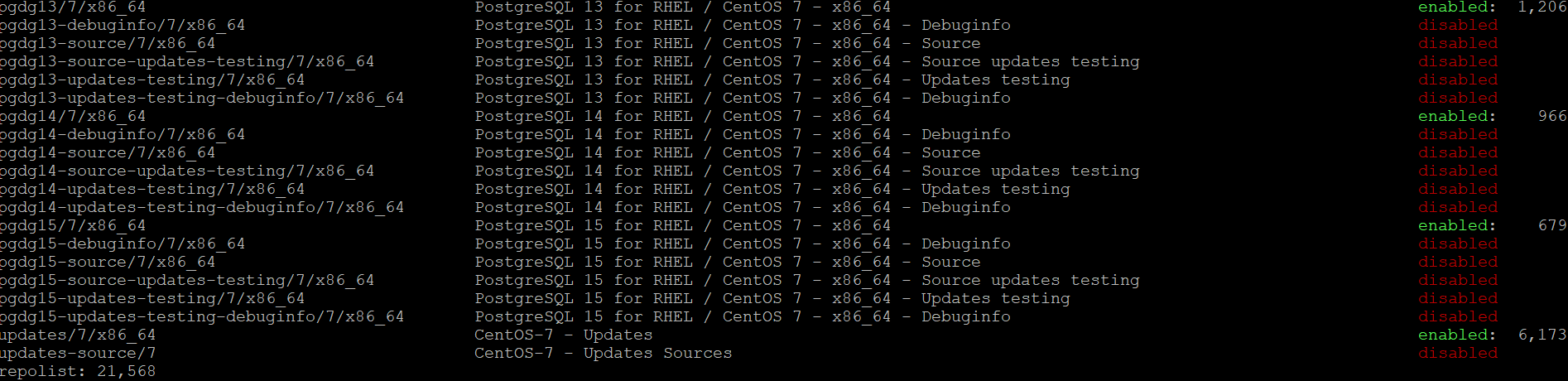 yum install -y https://download.postgresql.org/pub/repos/yum/reporpms/EL-7-x86_64/pgdg-redhat-repo-latest.noarch.rpm