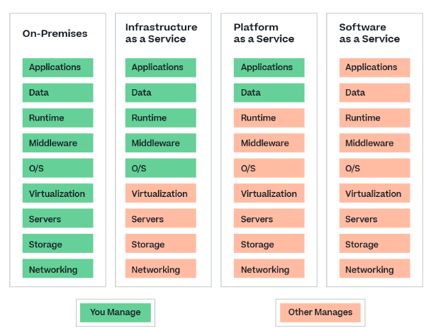 On-Premises, IaaS, Paas, SaaS